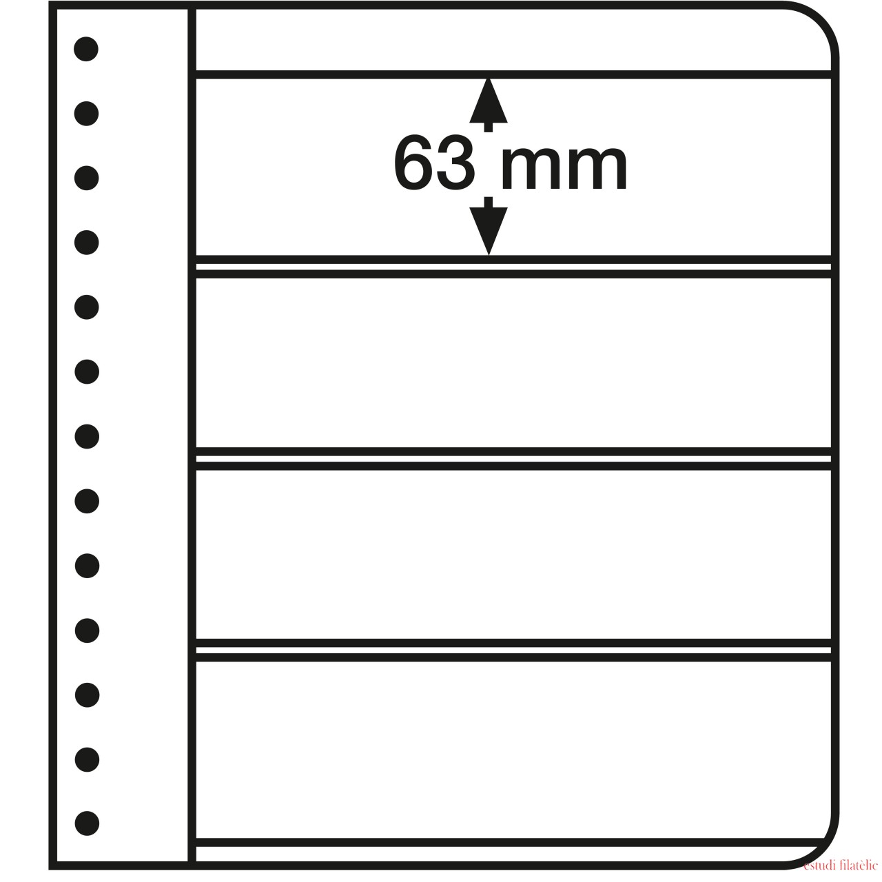 Las hojas G son compatibles con el sistema de álbumes PERFECT y Classic PERFECT. Capacidad de approx. 45 pliegos. Con 4 divisiones. Formato (Altura/Ancho): 63x223 mm. Hojas de plástico extra resistente en blanco (W). Formato exterior de la hoja: 270 x 297 mm