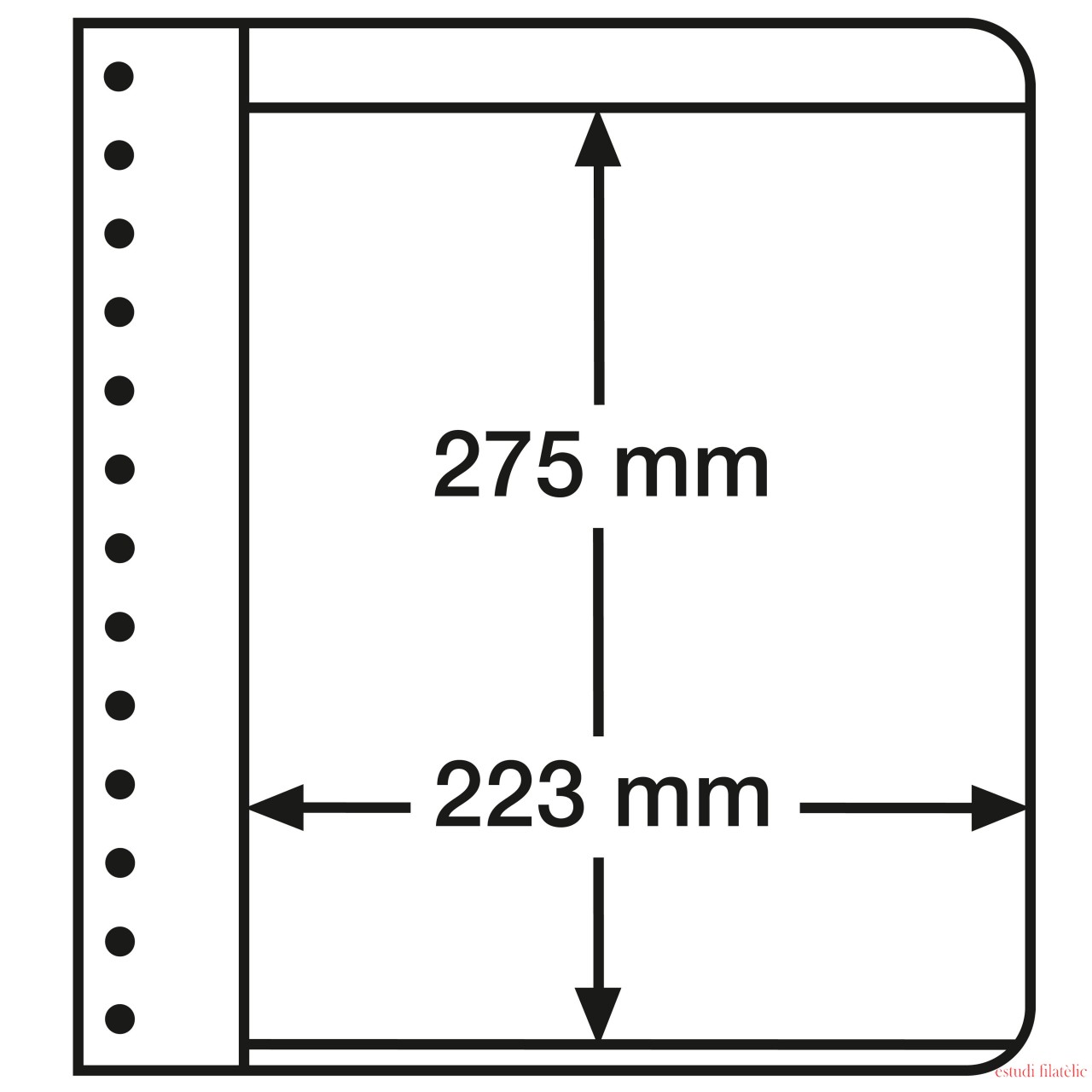 Las hojas G son compatibles con el sistema de álbumes PERFECT y Classic PERFECT. Capacidad de approx. 45 pliegos. Formato (Altura/Ancho): 275 x 223 mm. Hojas de plástico extra resistente en blanco (W). Formato exterior de la hoja: 270 x 297 mm