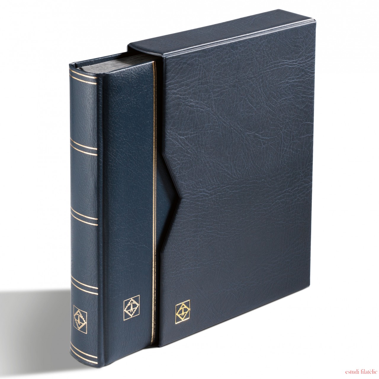 Leuchtturm 371799 Clasificador PREMIUM, DIN A4, 32 páginas negras, tapa de cuero* acolchada + cajetín, azul