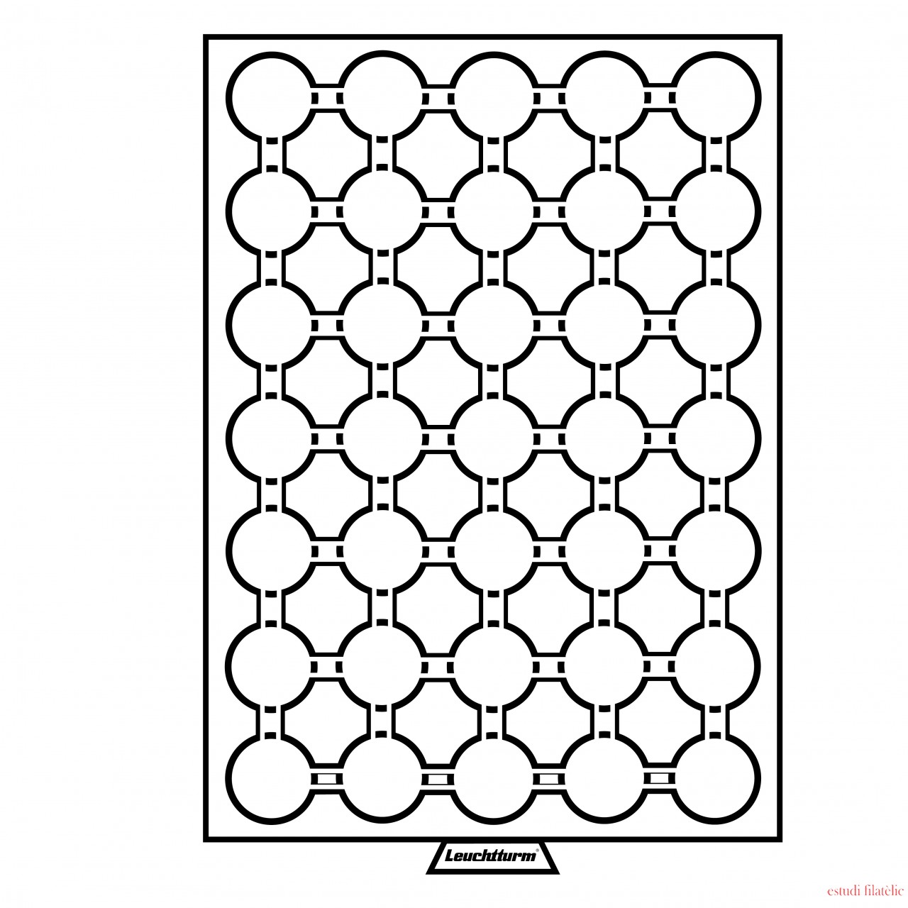 Bandejas en cajas de color gris, con superficie aterciopelada en rojo claro. Compartimentos adecuados para todas las cápsulas de LEUCHTTURM. Protección doble para sus monedas valiosas. Las bandejas se pueden completar, colocándolas una encima de la otra. Formato exterior: 236 x 20 x 303 (En estas bandejas el diámetro se refiere al diámetro de la cápsula.)