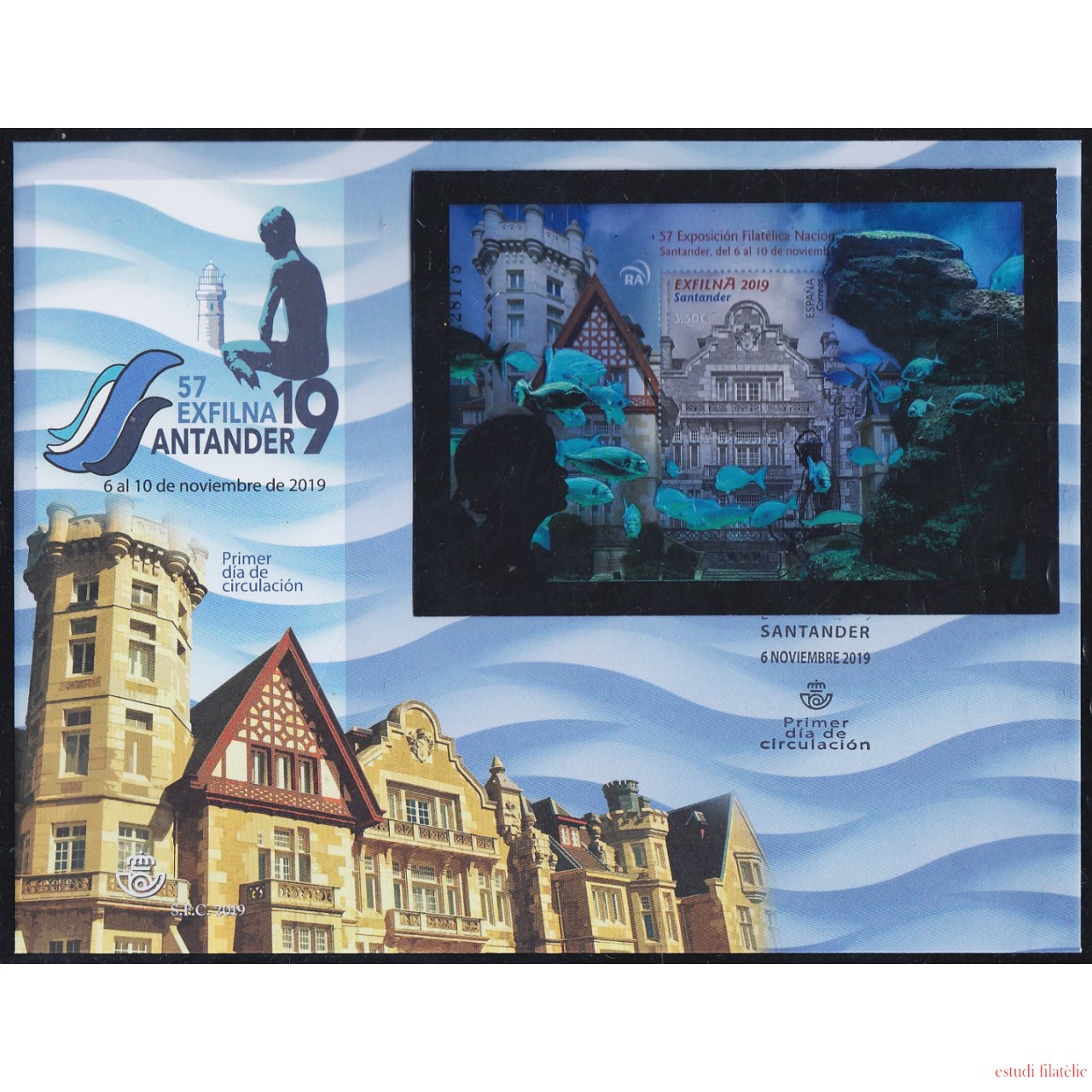 España Spain 5355 2019 Exfilna Santander SPD Sobre Primer Día