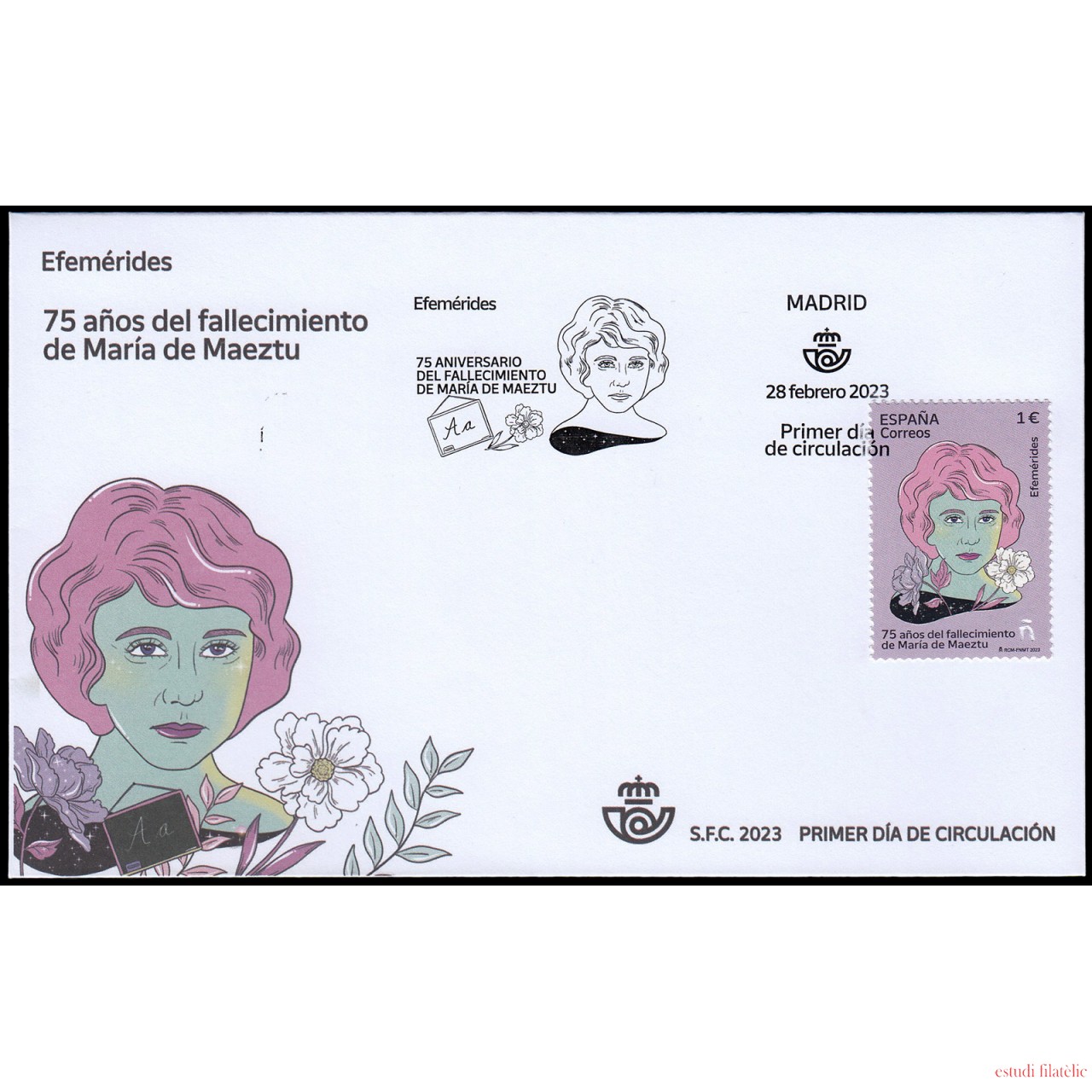 España Spain 5639 2023 Efemérides 75 aniv. fallecimiento de María de Maeztu Sobre Primer Día Foto estándar
