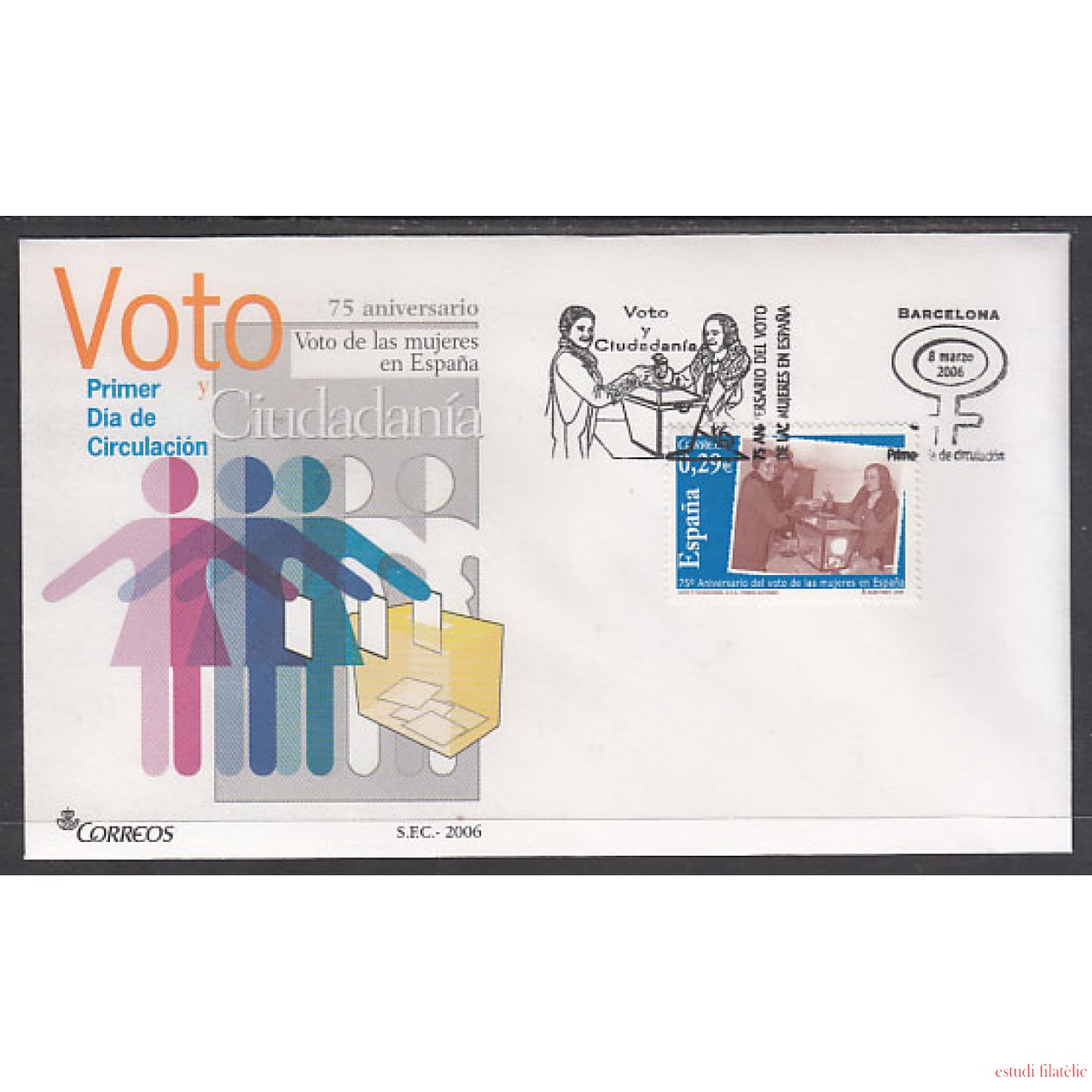 España Spain Nº4223 Año 2006 LXXV Aniversario del voto de las mujeresen España, SPD FDC SOBRE PRIMER DIA,foto estándar