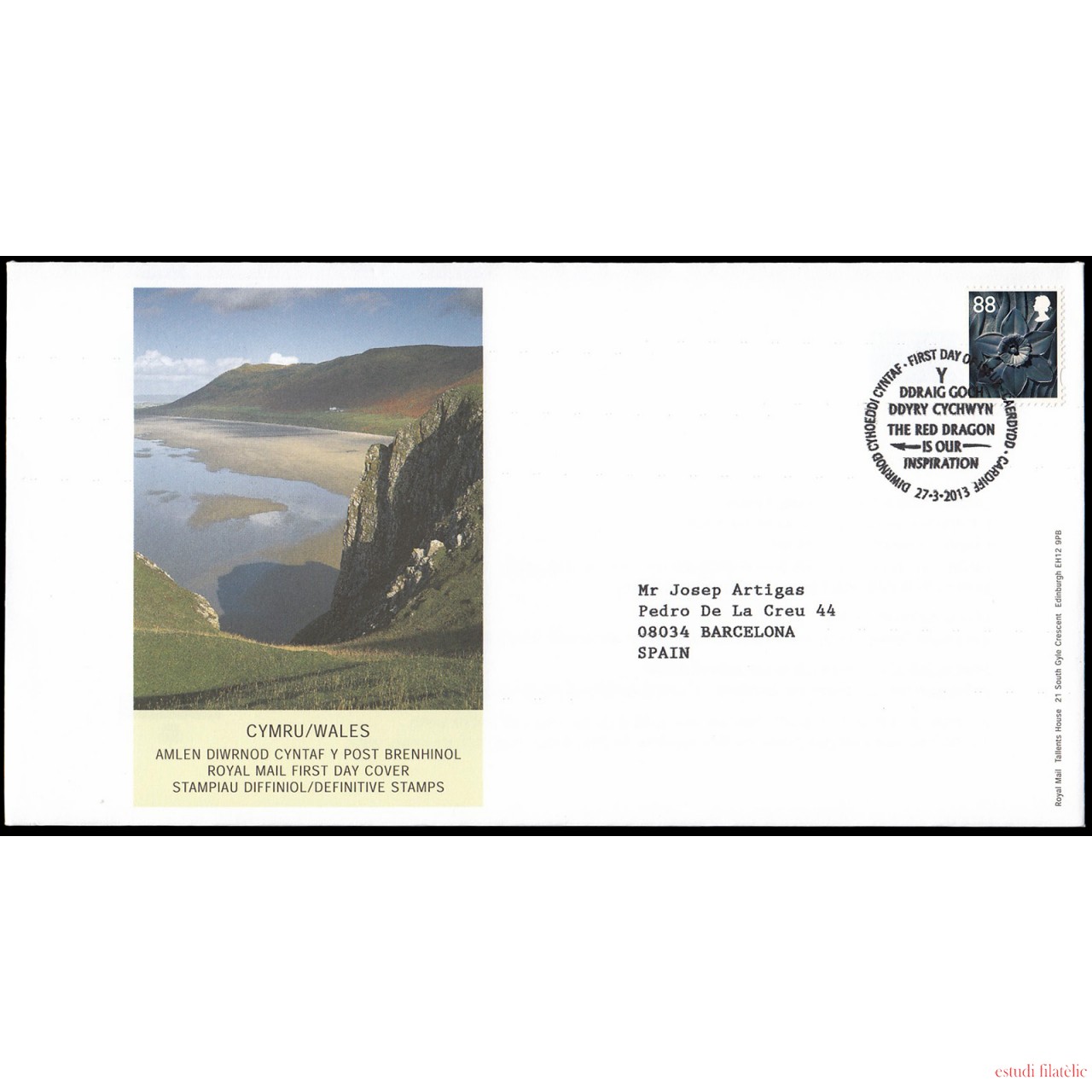 Gran Bretaña 3837 2013 SPD FDC Serie Regional Gales Sobre primer día Cardiff
