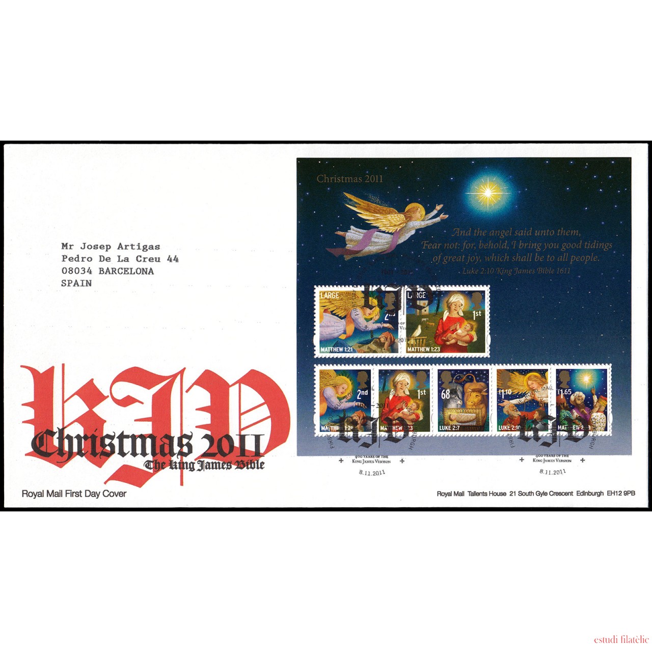 Gran Bretaña HB 88 2011 SPD FDC Navidad La biblia del Rey Jacques Tallents House Edinburgh Sobre primer día