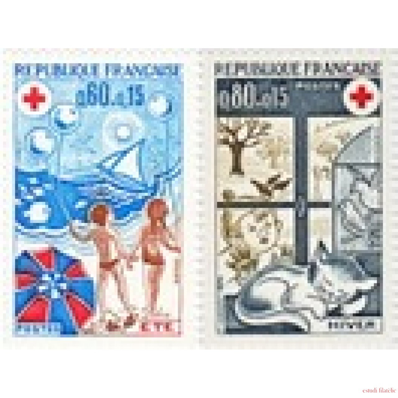 France Francia Nº 1828/29 1974 Sorteo a favor de la Cruz Roja Lujo