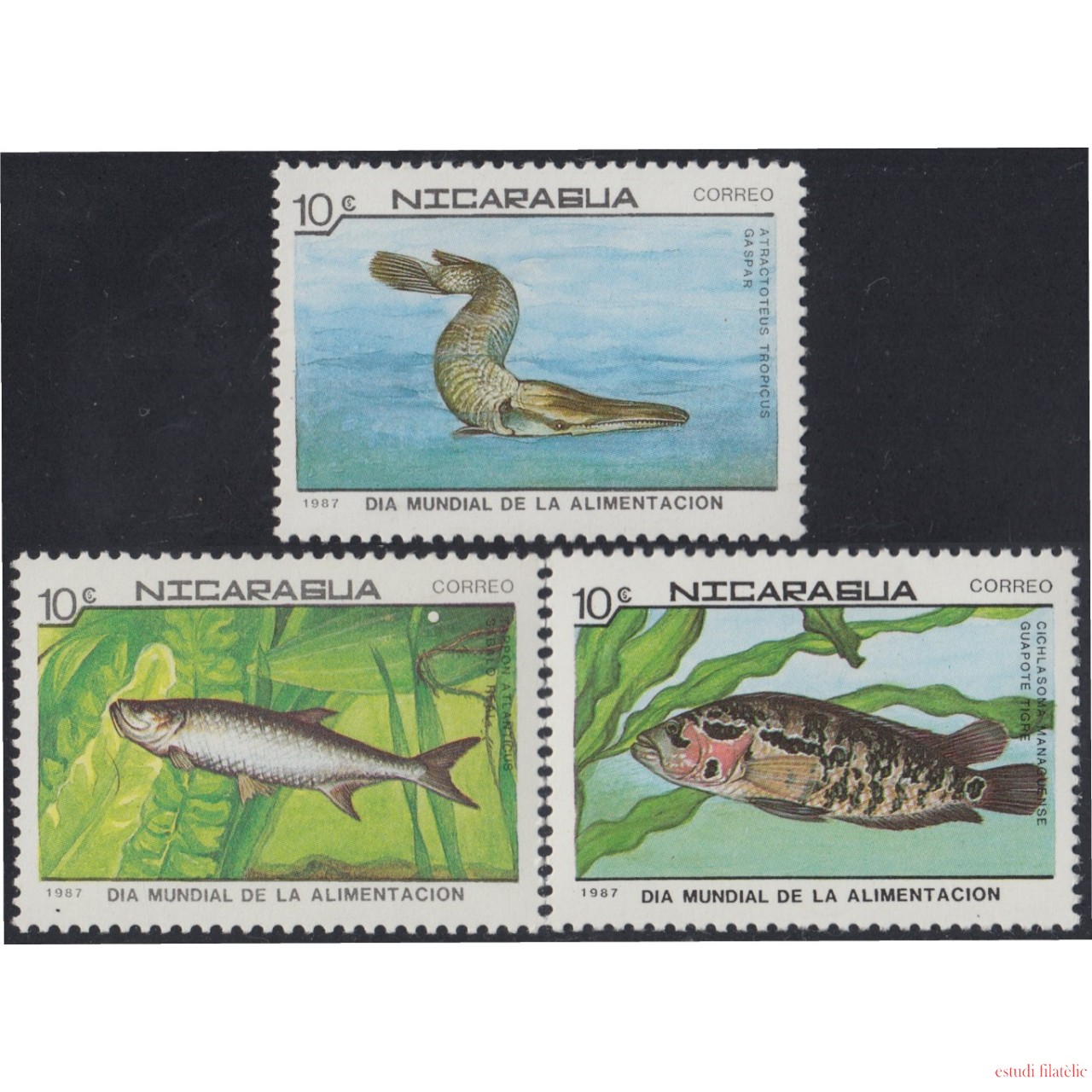 Nicaragua 1474/76 1987 Día mundial de la alimentación Peces Fishes MNH