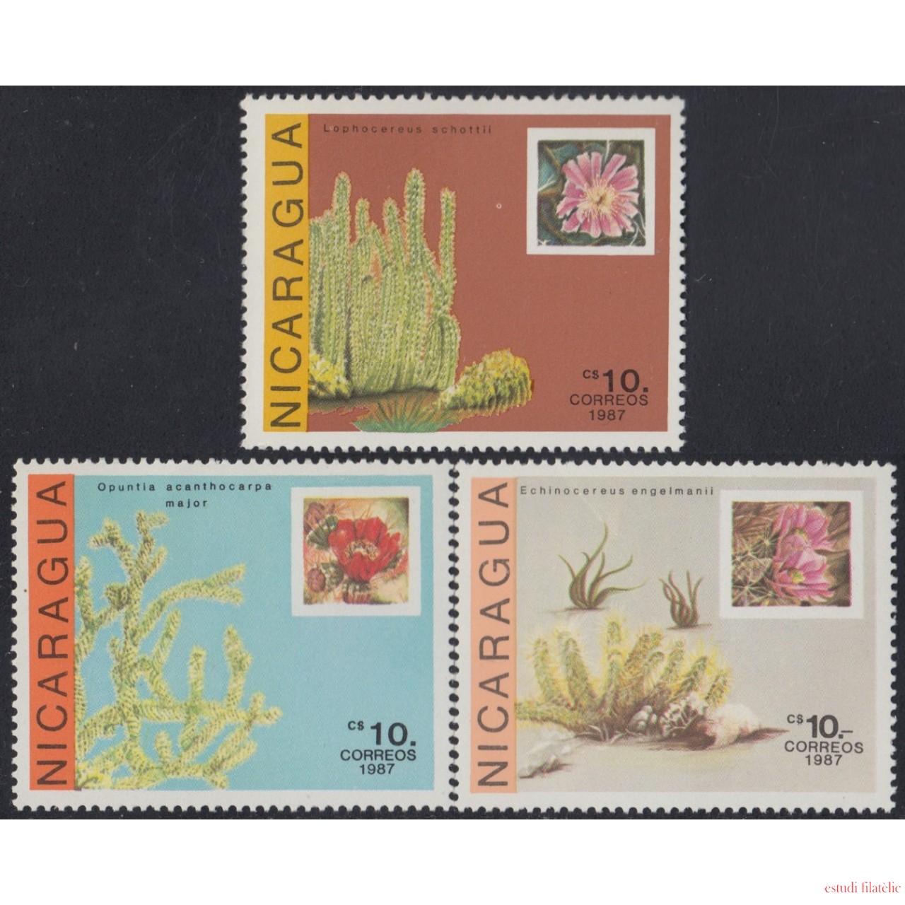 Nicaragua 1479/81 1987 Flora Cactus y sus flores MNH