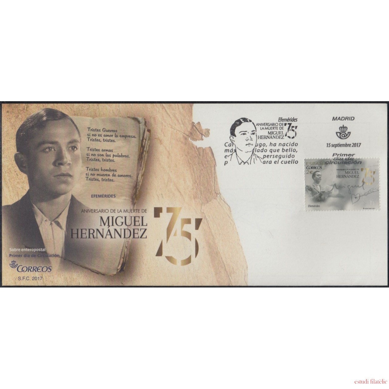 España Spain 5163 2017 Efemérides 75º Aniversario del fallecimiento de Miguel Hernández SPD Sobres Primer Día