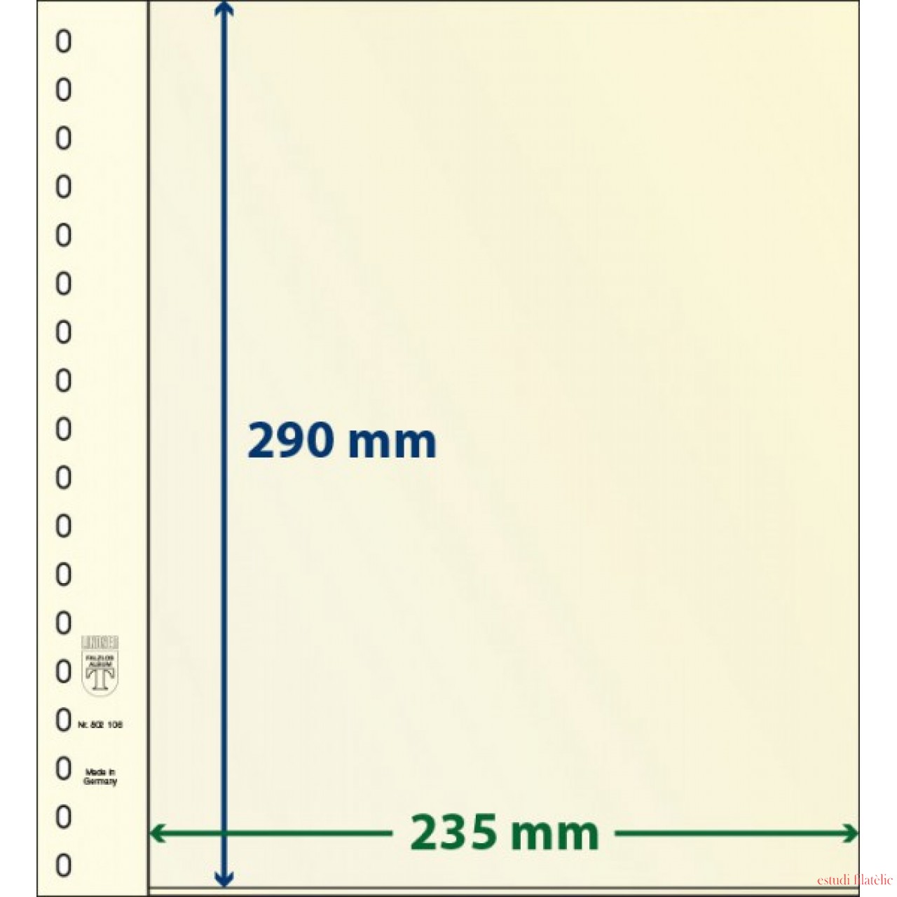Sin marco (máx. 23 mm) Máx. altura del bolsillo: 290 mm LINDNER T-páginas en blanco medidas externas: 272 x 296 mm