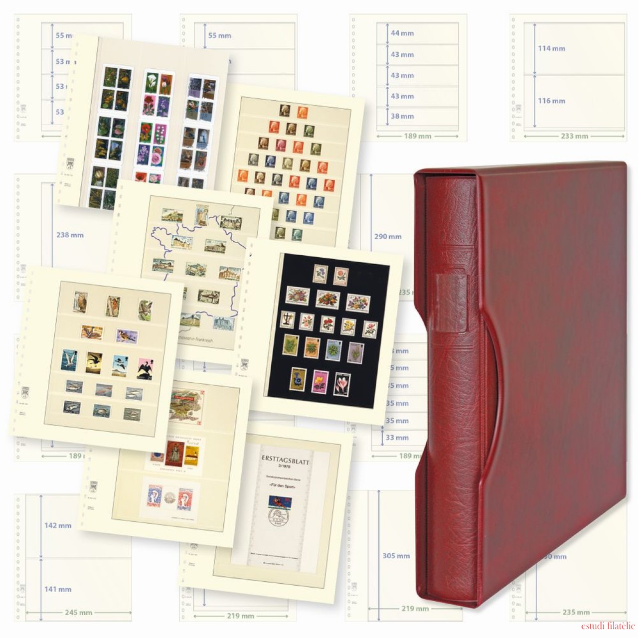 Lindner 1124TB-W Oferta completa: Juego de tapa de anillos REGULAR (1124) rojo oscuro, incl. 2 paquetes de hojas T-Blanko de su elección