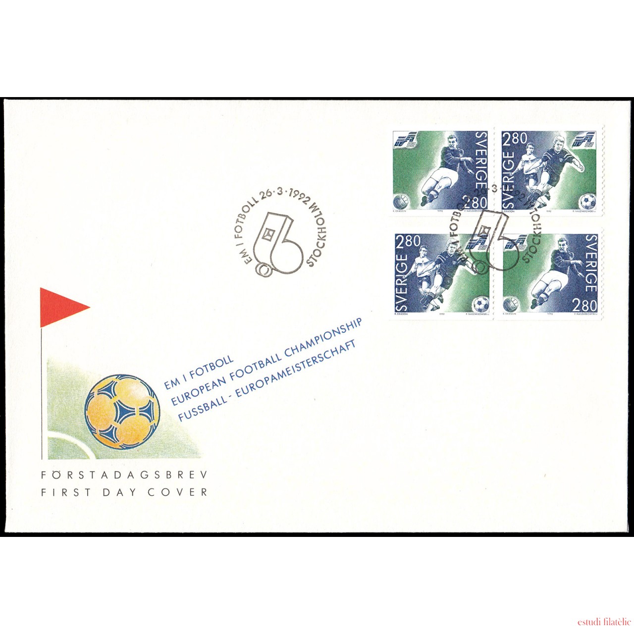 Suecia Sweden SPD FDC 1697/98 1992 Campeonato de Europa de fúltbol 1992 en Suecia Sobre primer día