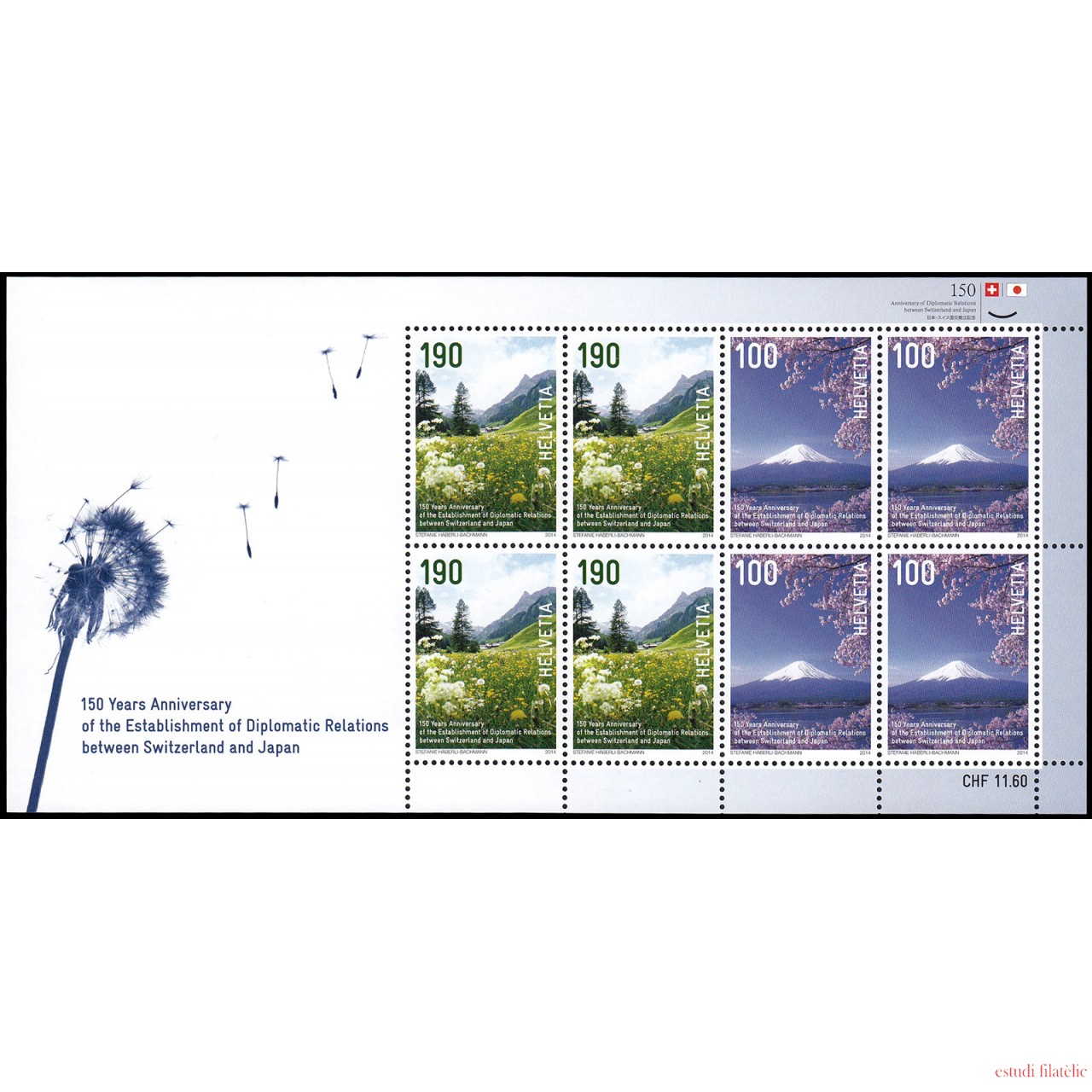 Suiza Switzerland 2252/53 2014 150 aniv. del establecimiento de relaciones diplomáticas entre Japón y Suiza minihojita MNH