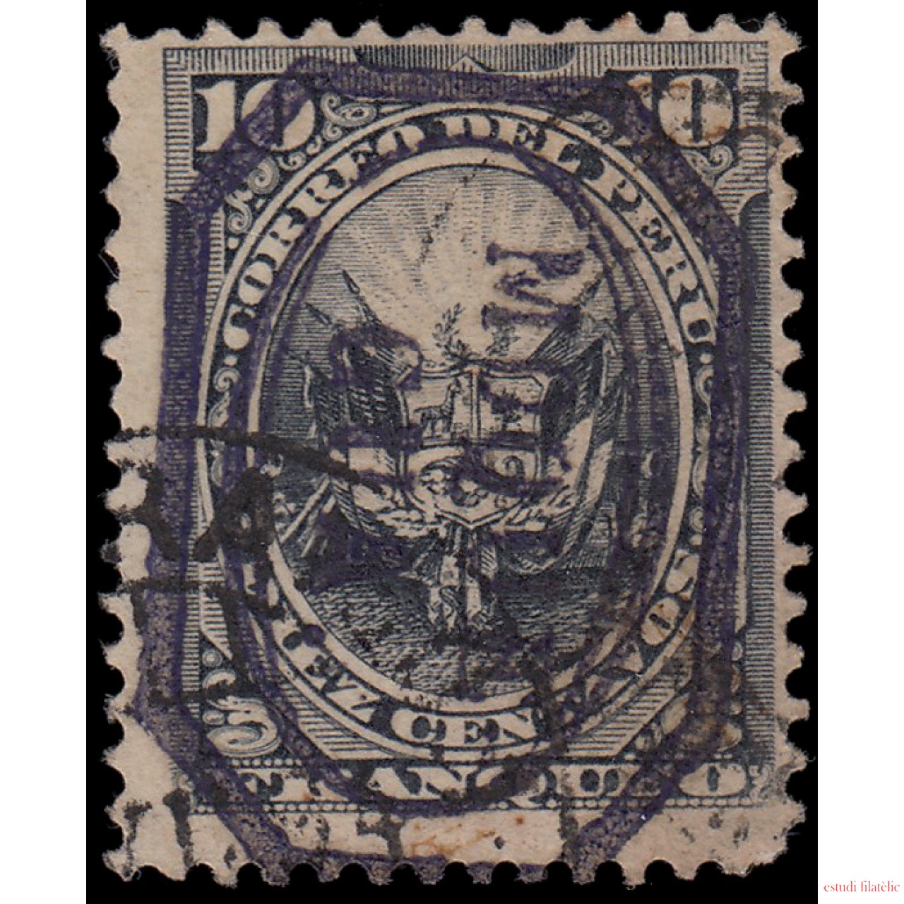 • Perú Moquegua 9 1884 Sellos de Perú de 1874-84 con sobrecarga carmín Usado