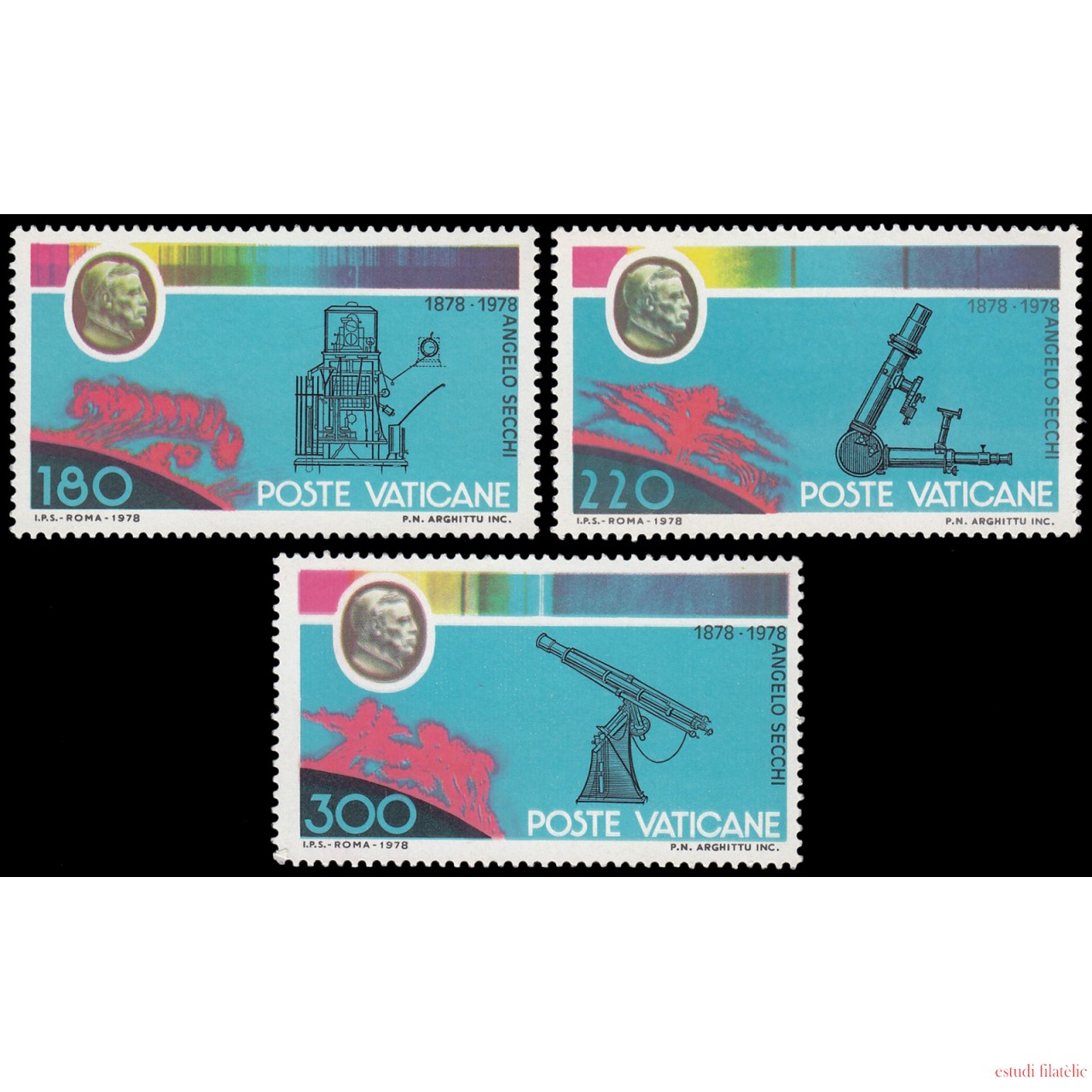 Vaticano 675/77 1979 Centenario de la muerte del astrónomo P. A. Secchi aparatos de astronomía MNH