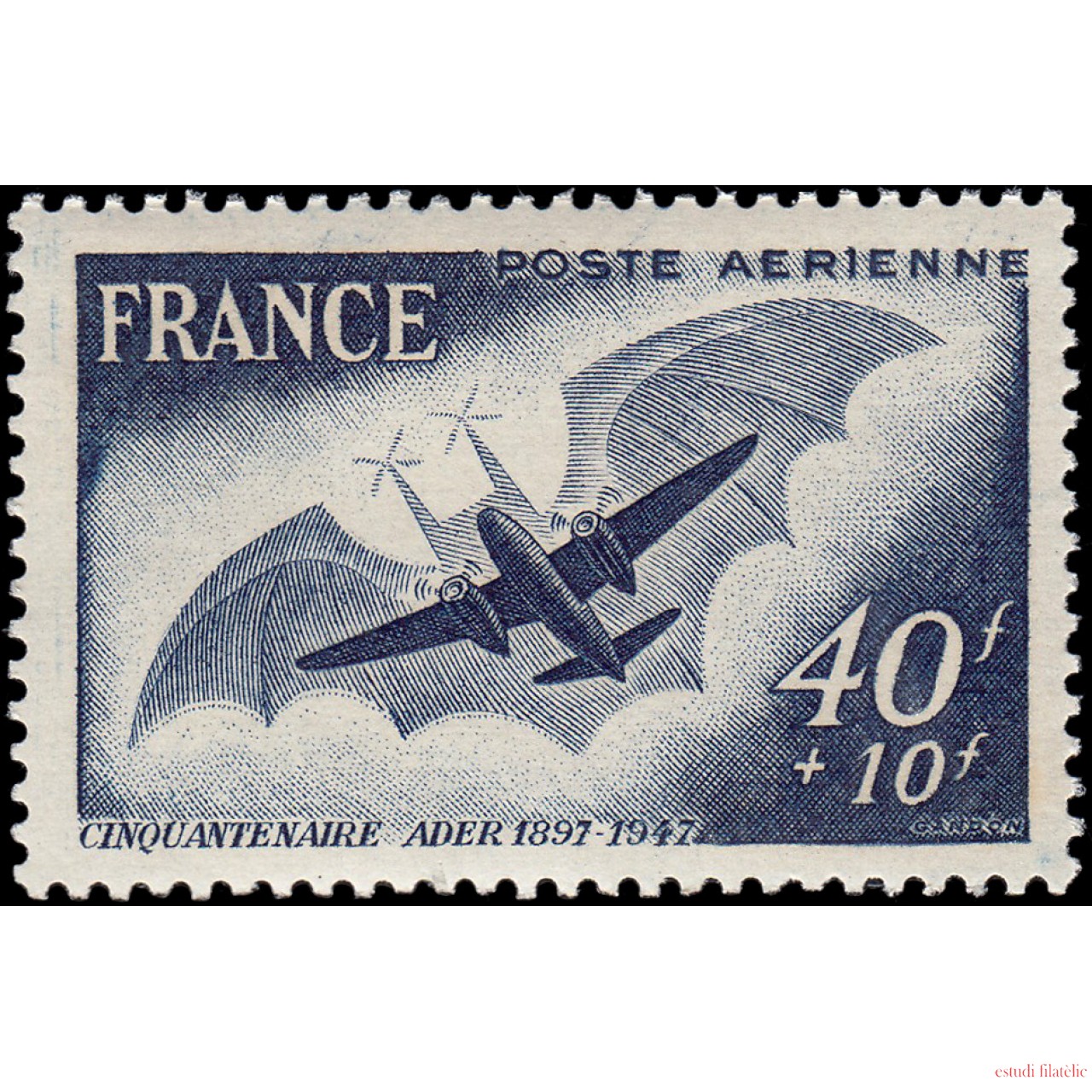 France Francia A 23 1948 Sorteo Mutua francesa 50 aniv. primer vuelo de avión Ader Alas de murciélago MNH