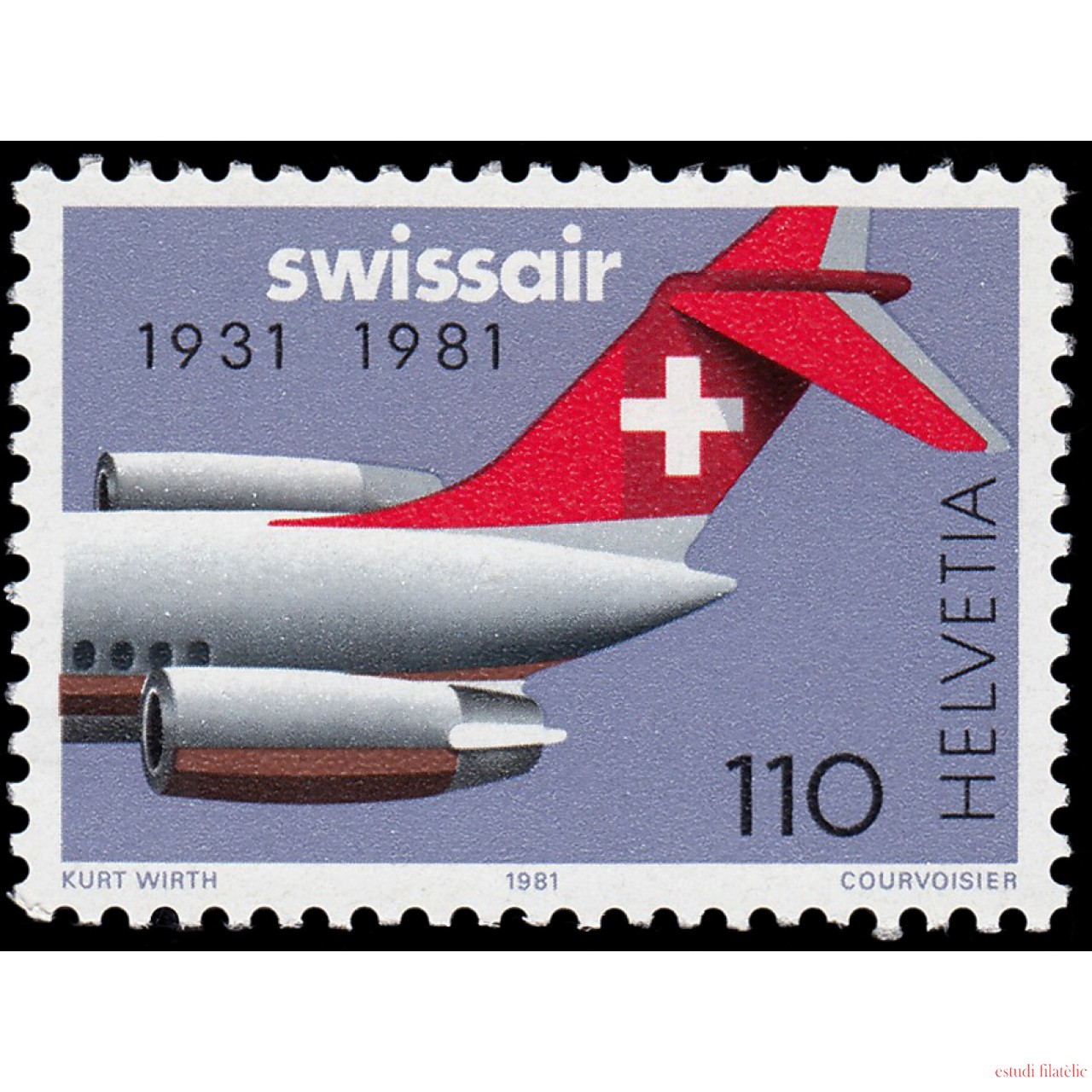 TRA2/S Suiza Switzerland 1125 1981 50 Aniv. de la compañía aérea Swissair Cola de avión MNH