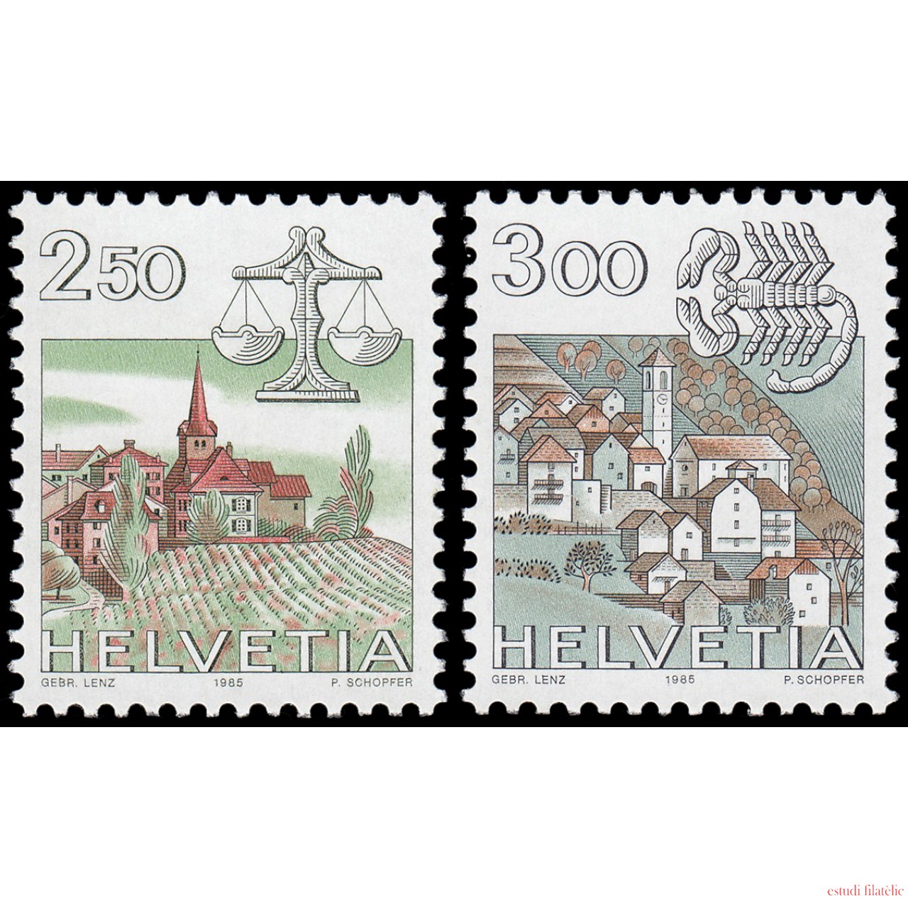 Suiza Switzerland 1217/18 1985 Serie Signos del zodiaco y paisajes MNH