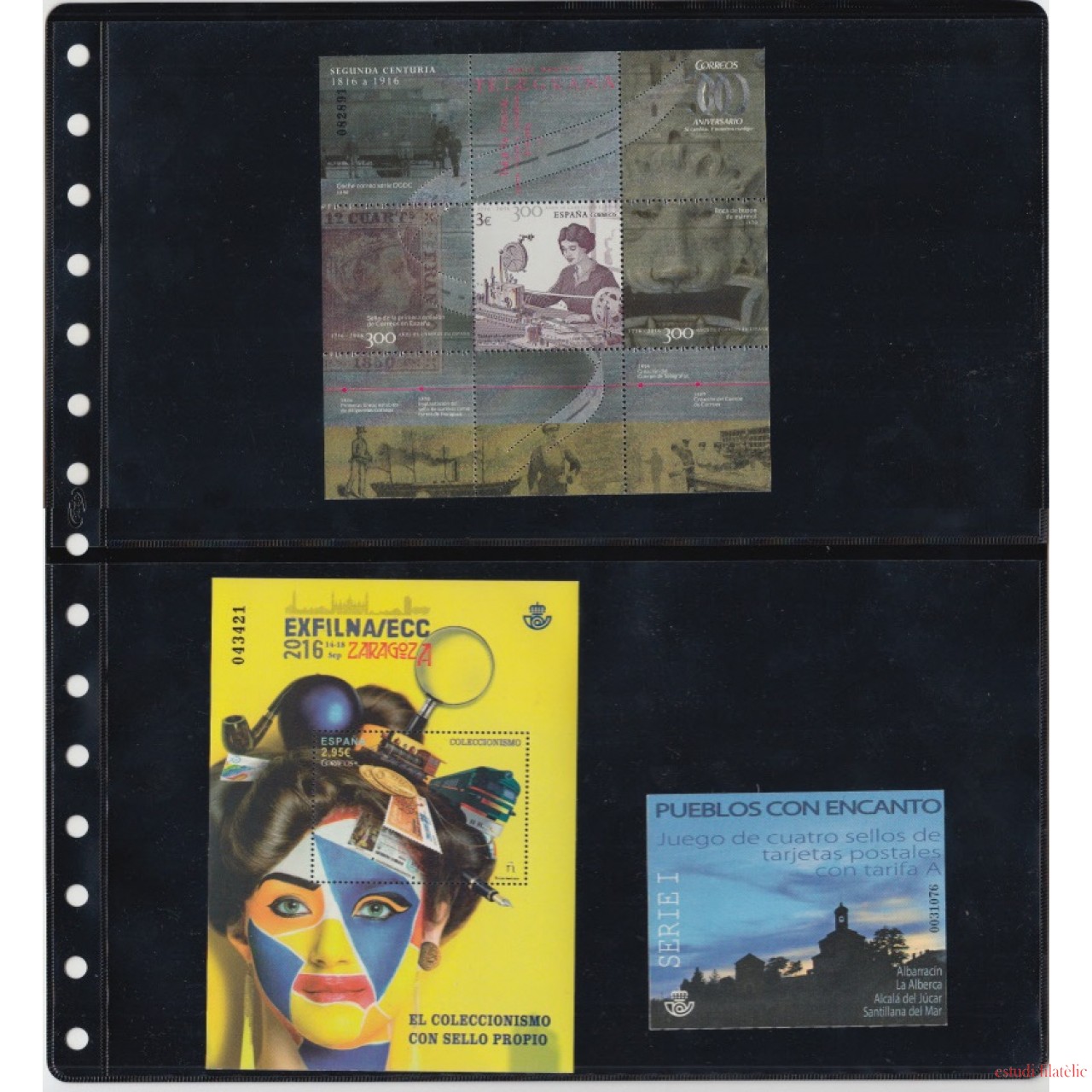 Fundas clasificadoras universales con una lámina central opaca negra y transparente a cada lado. Se fabrican en cinco versiones. 2 alojamientos por cada lado. Medidas: 270x297mm. Paquete de 10 fundas.
