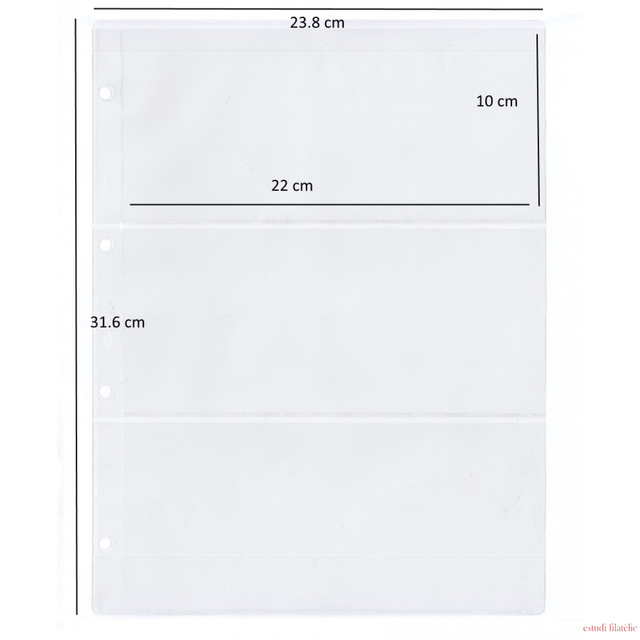 Fundas de colección con diversos alojamientos en plástico transparente. Medidas: 238x315mm. Paquete de 10 fundas. Funda 3 depart.
