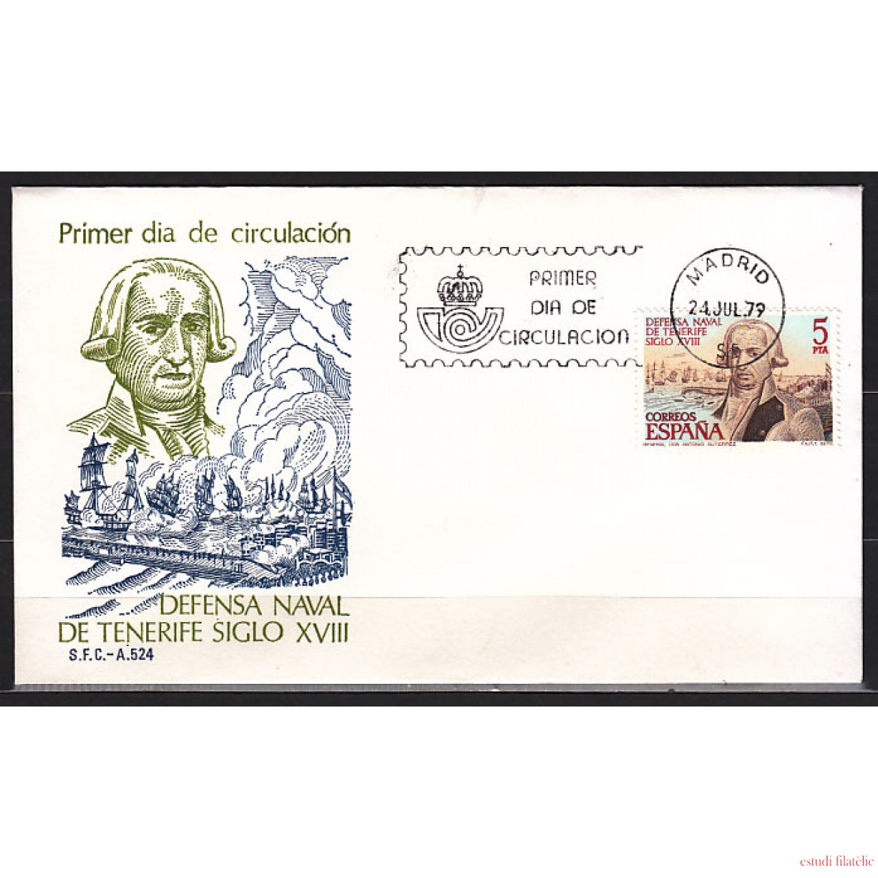 España Spain N 2536 Año 1979 Defensa Naval de Tenerife XVIII,SPD FDC SOBRE PRIMER DIA, foto estándar