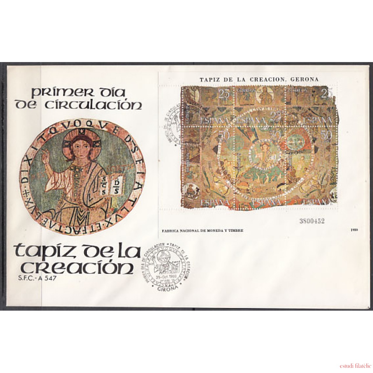 España Spain 2591 1980 Tapiz de la Creación Gerona SPD Sobre Primer Día