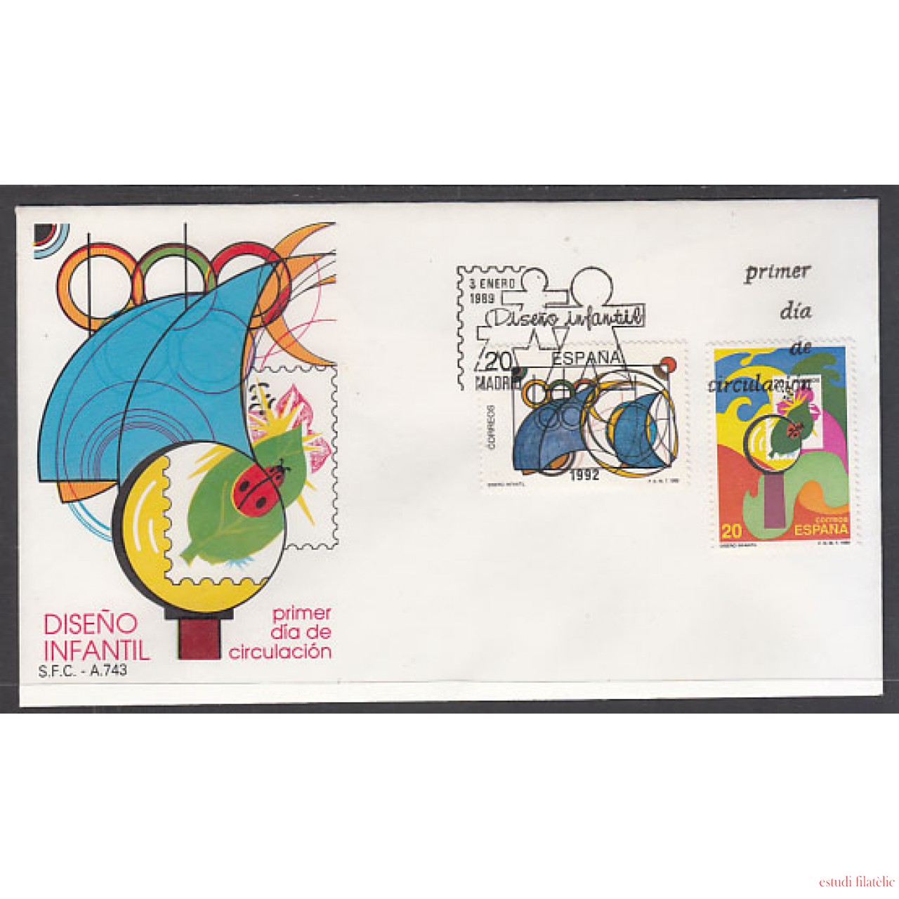 España Spain Nº2986/87 Año 1989 Diseño infantil, SPD FDC SOBRE PRIMER DIA,foto estándar