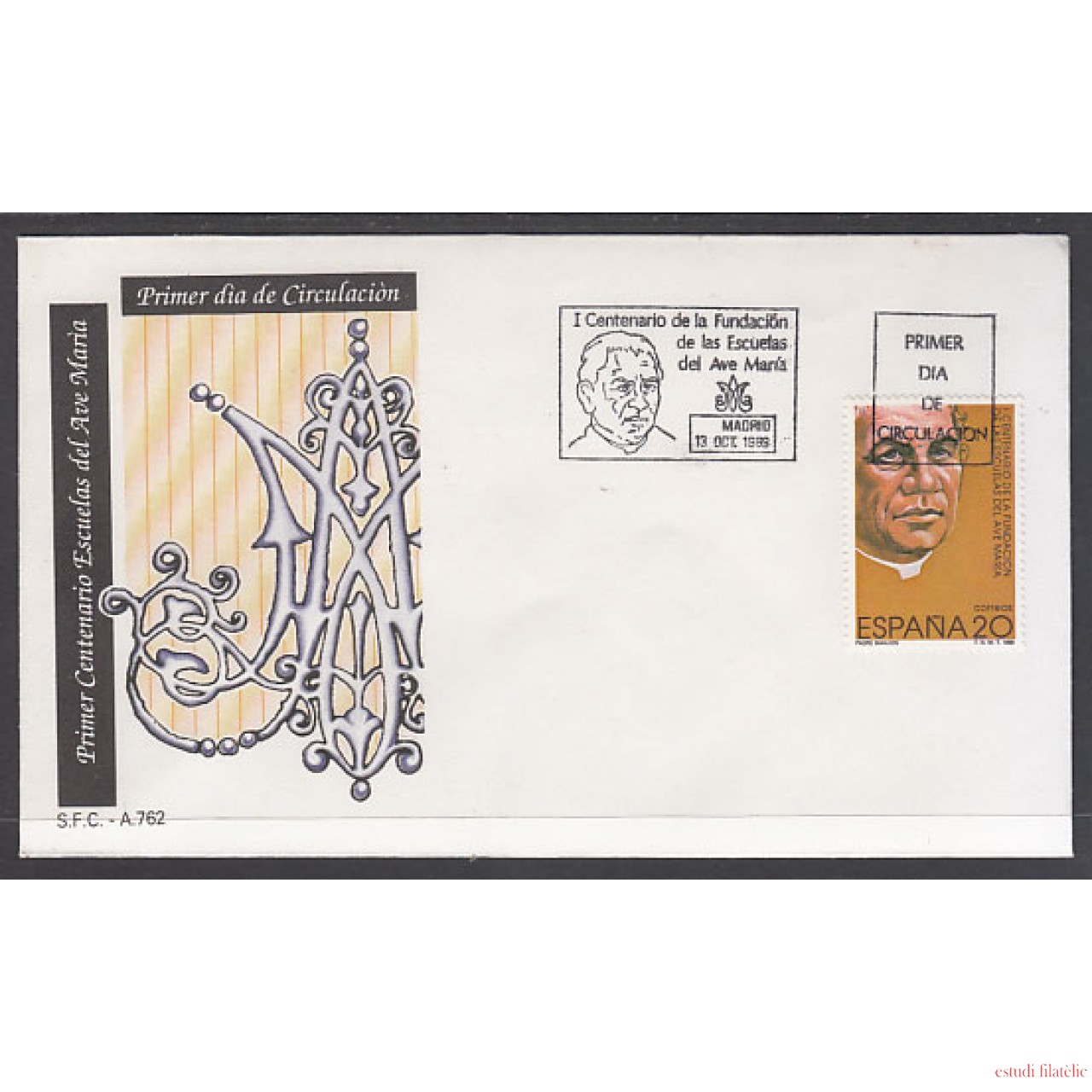 España Spain Nº3028 Año 1989 I Centenario de la Fundación de las Escuelas del Ave Maria Escuelas Ave María, SPD FDC SOBRE PRIMER DIA,foto estándar