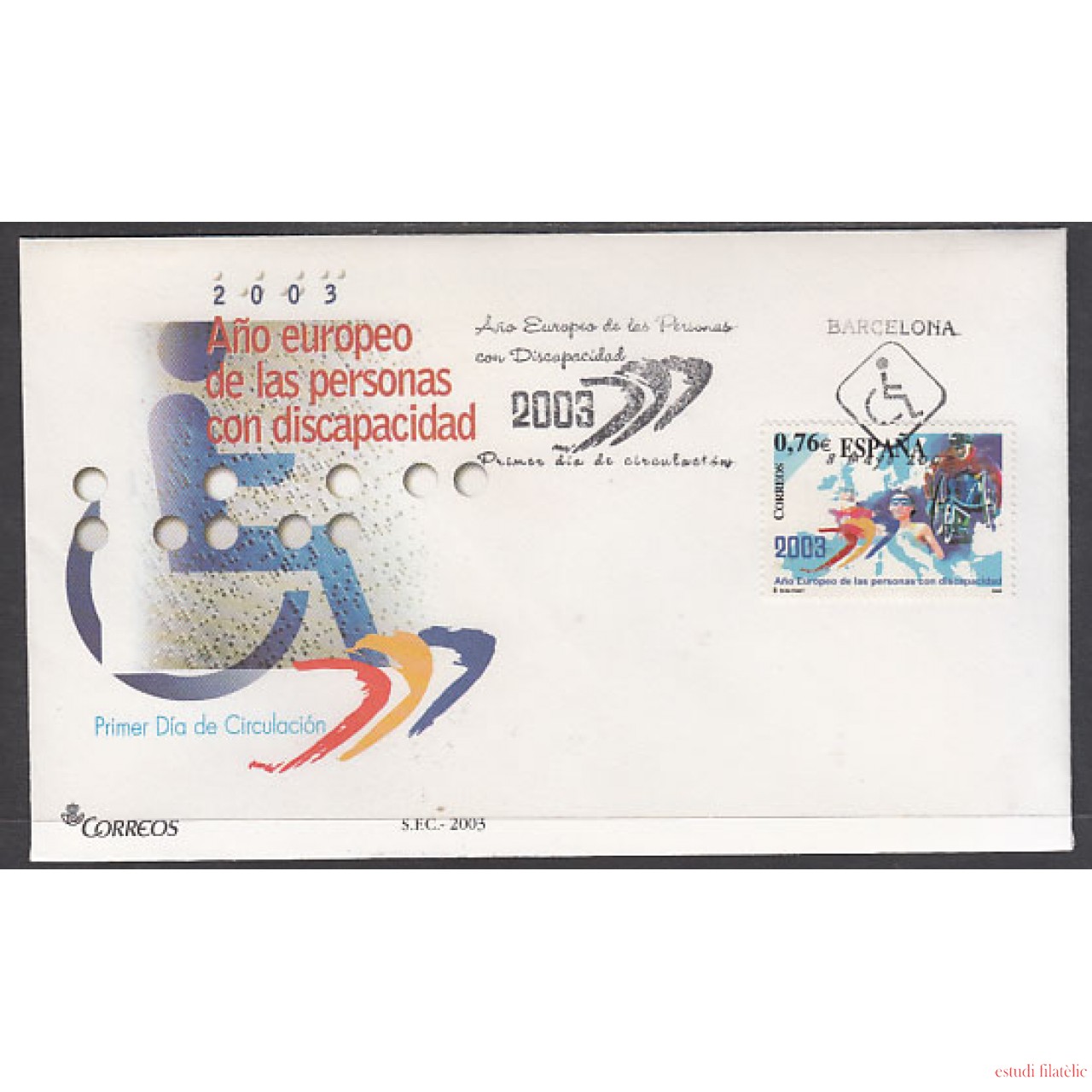 España Spain 3985 2003 Año europeo de las personas con discapacidad SPD Sobre Primer Día