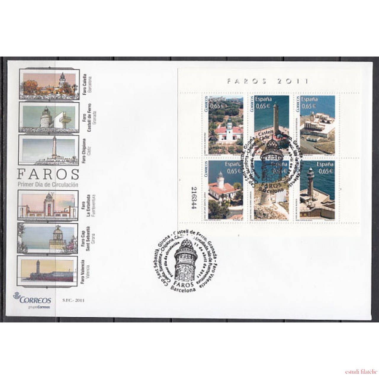 España Spain 4646 2011 Faros Barcelona Cádiz Las Palmas Gerona Granada SPD Sobre Primer Día