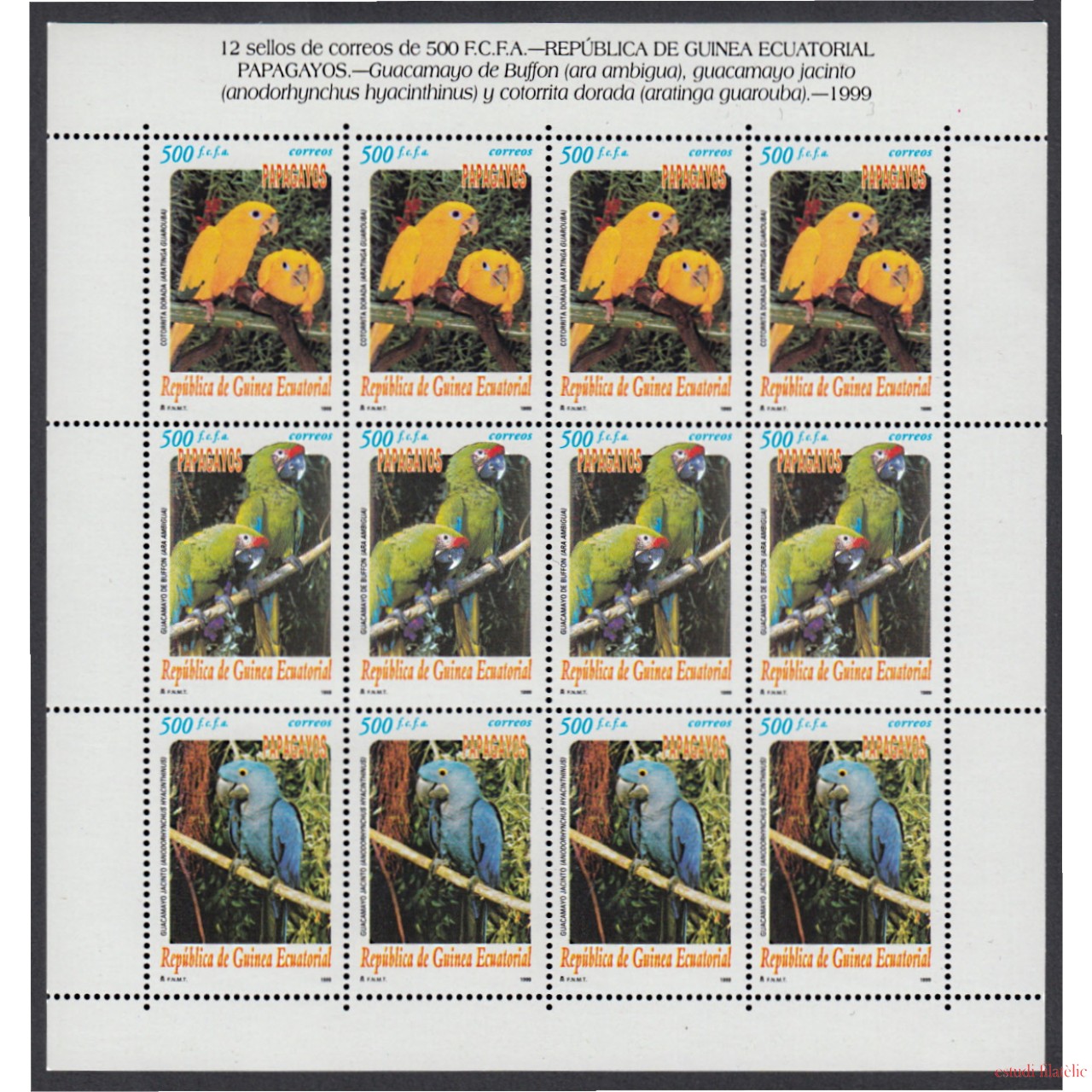 Guinea Ecuatorial 259/61 1999 Minihojita Papagayos Aves birds MNH