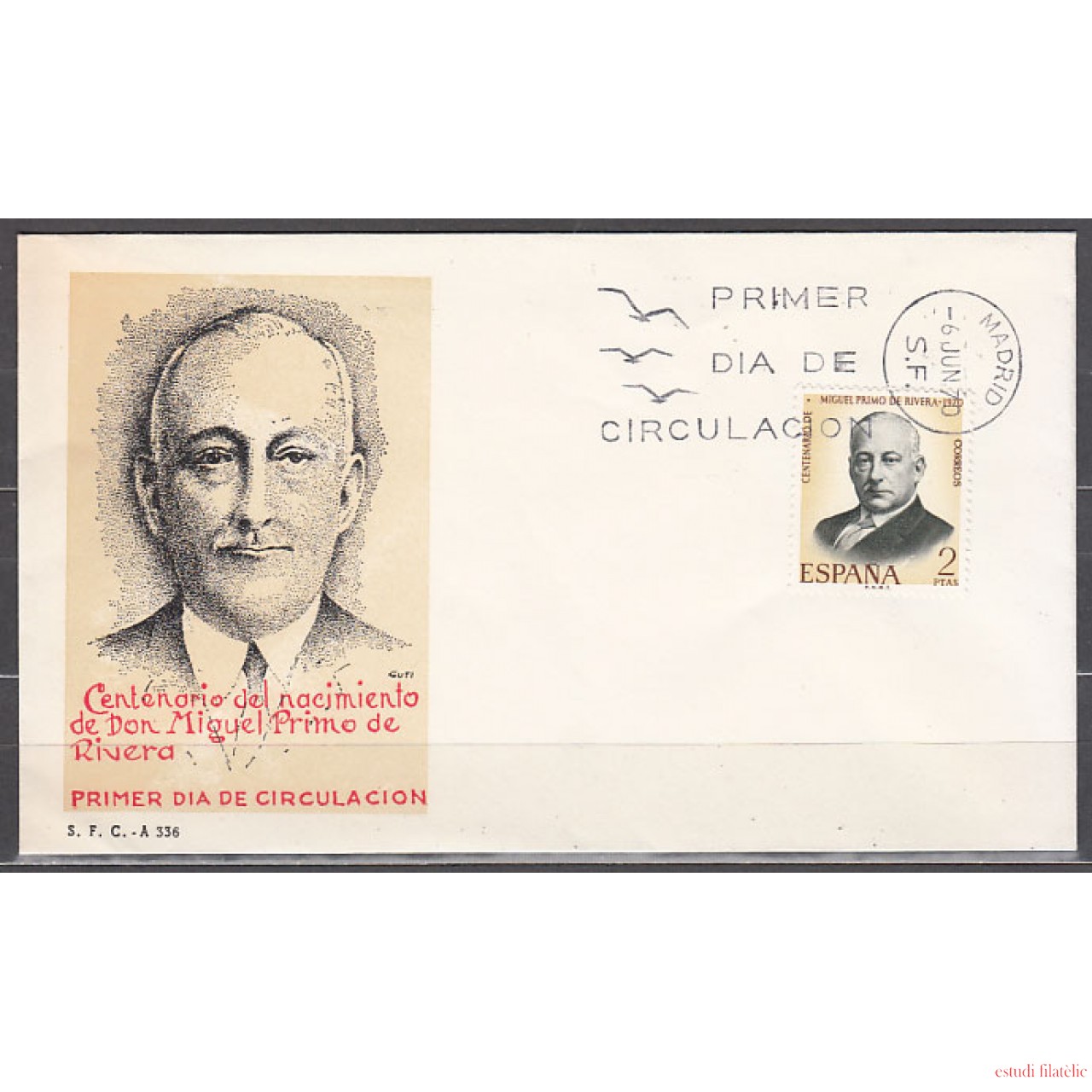 ESPAÑA SPAIN Nº 1976 1970 AÑO Cº del nacimiento de Miguel Primo de Rivera SPD Sobre Primer Día, foto estándar