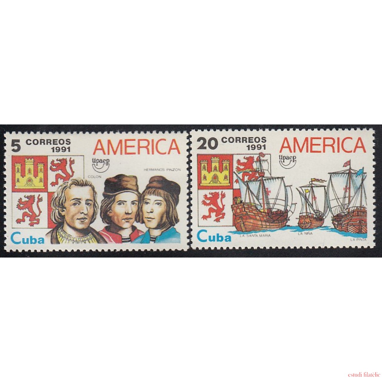Upaep Cuba 3153C/3153D 1991 Colón Pinzón carabela Sta María Niña Pinta MNH