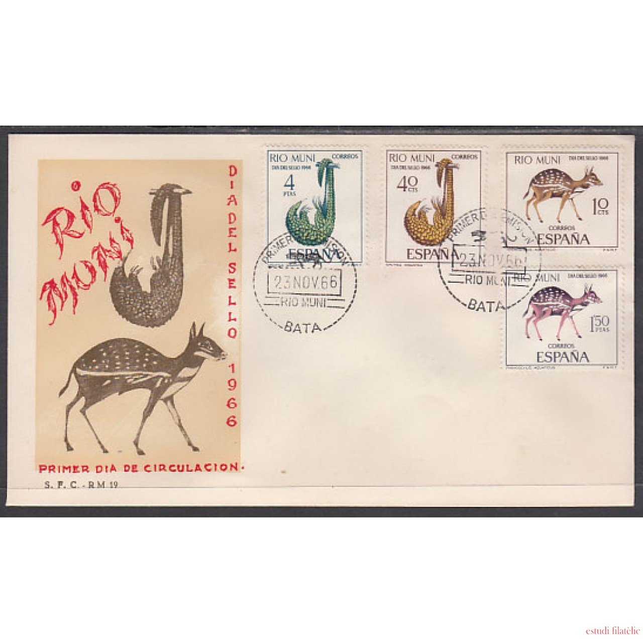 RIO MUNI 72/75 1966 Día del Sello Fauna SPD Sobres Primer Día