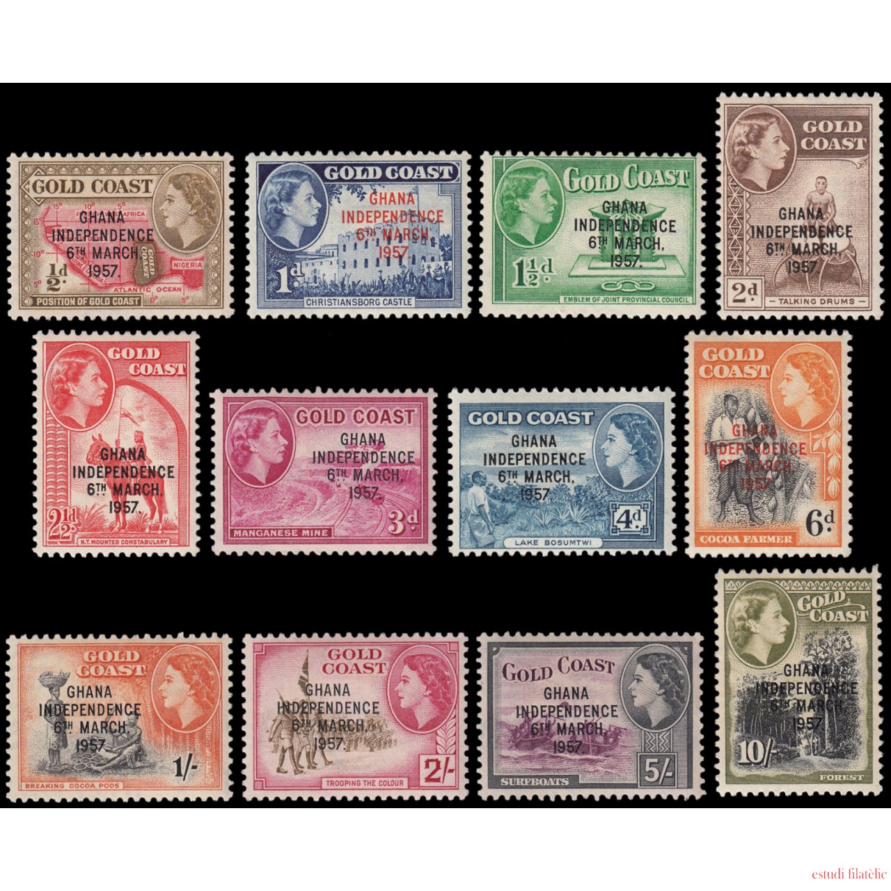 Ghana 1/9 1957-58 Sellos de Costa de Oro con sobrecarga Independencia MNH
