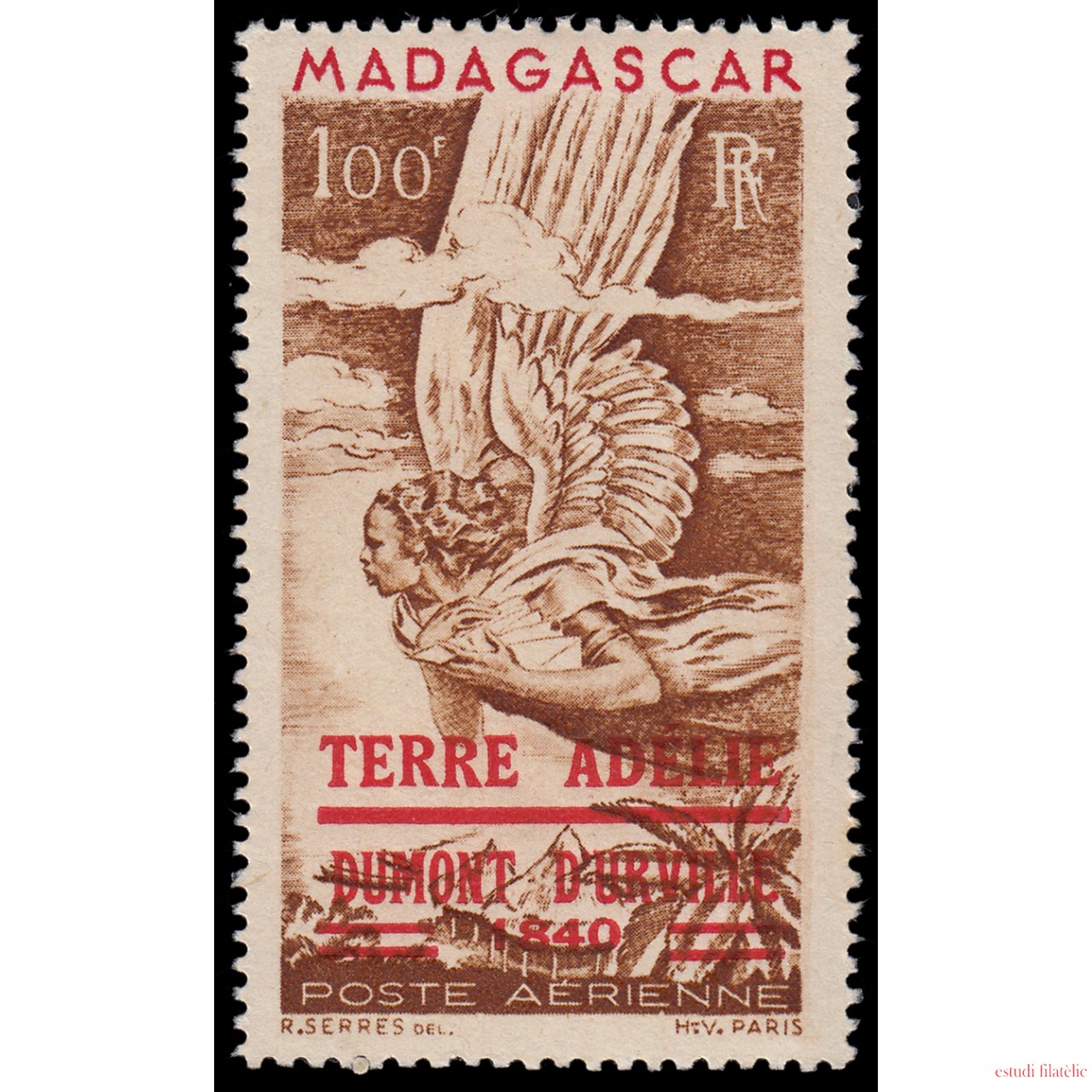 TAAF Aéreo 1 1955 Terre Adélie Dumont Sello de Madagasacar con sobrecarga MNH